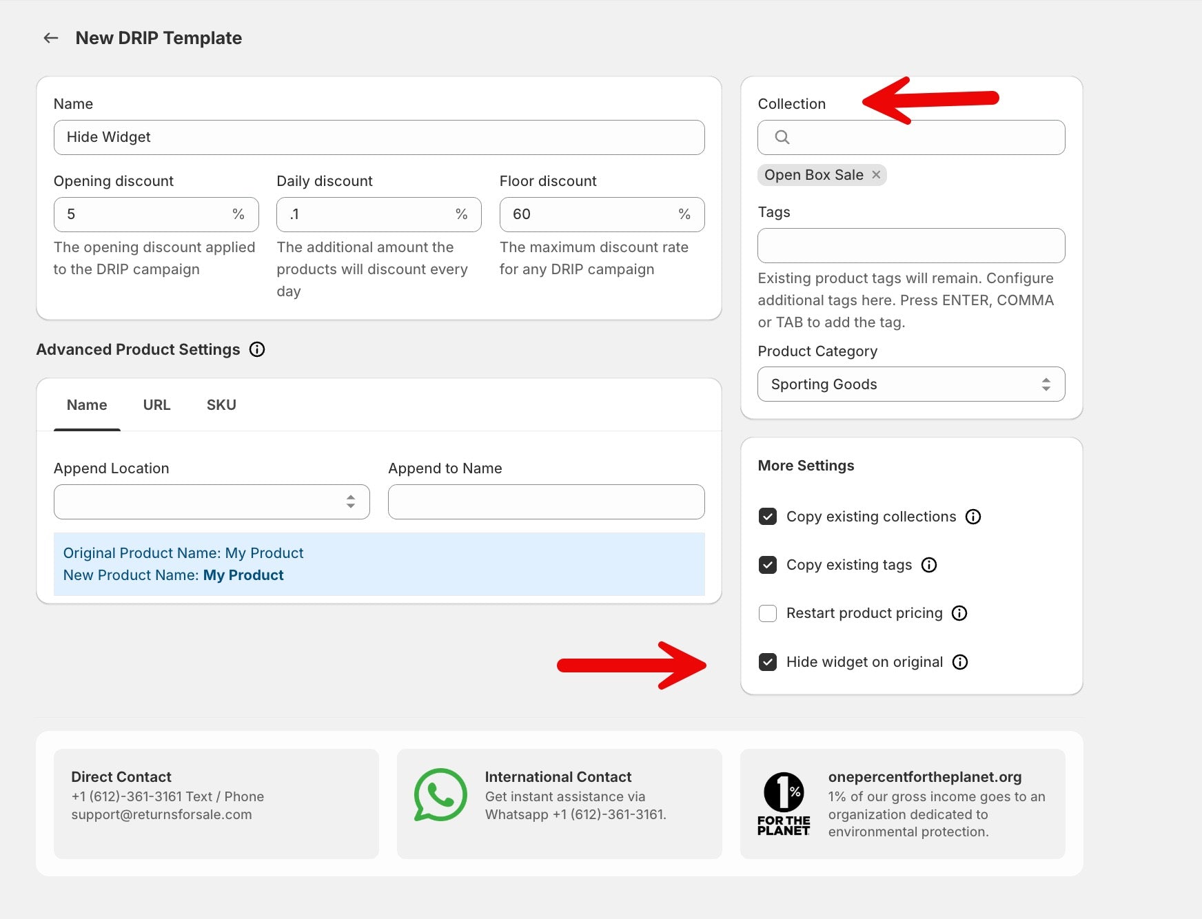 If you go to the Returns collect, you'll see this snowboard listed there as an Open Box return. You do not need to post a widget to the new product page, as in this case.